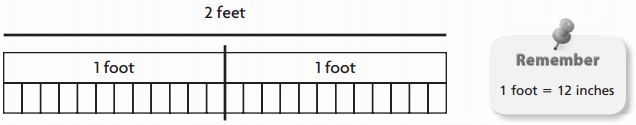 Erin has a shelf that is 2 feet long. How many inches long is Erin’s shelf? |