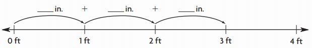 Draw a 12-inch jump for each foot. Add the lengths of the jumps to find the total number of inches.