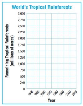 Describe the change in the world’s remaining rainforests from 1940 to 2010.