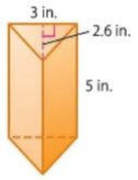 Persevere with Problems Janet is mailing a candle that is in the shape of a triangular prism as shown. She put the candle in a rectangular box that measures 3 inches by 5 inches by 7 inches and places foam pieces around the candle. Find the volume of the foam pieces needed to fill the space between the candle and the box.