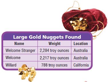 If the Welcome gold nugget were turned into 3 equal-sized gold bricks, how many troy ounces would each brick weigh?