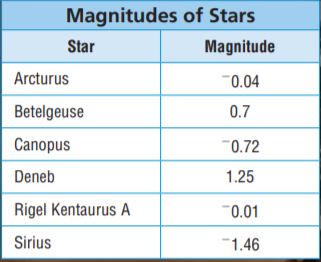 A star’s magnitude is a number that measures the star’s brightness. Use the table of star magnitudes for 20–22.