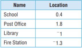 The flag pole is located at point 0 on a map of Orange Avenue. Other points of interest on Orange Avenue are located on the number line based on their distances, in miles to the right of the flag pole (positive numbers) or to the left of the flag pole (negative numbers). Graph and label each location on the number line.