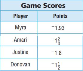 The player who scores the closest to 0 points wins the game. The scores of four players are given in the table. Who won the game?