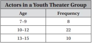 The frequency table shows the ages of the actors in a youth theater group. What percent of the actors are 10 to 12 years old?