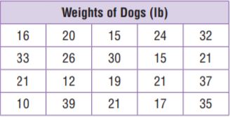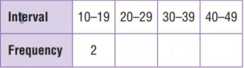 Make a histogram of the data using the intervals 10–19, 20–29, and 30–39.