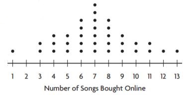 Make Arguments Jason collected data about the number of songs his classmates bought online over the past 3 weeks. Does the data set have symmetry? Why or why not?