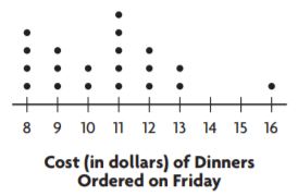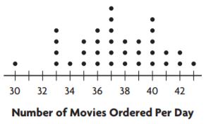 Look at the dot plot. Where does a peak occur in the data?