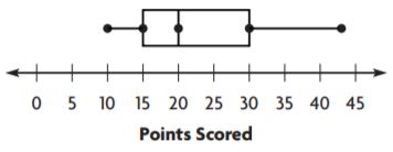 A store collects data on the sales of DVD players each week for 3 months. The manager determines that the data has a range of 62 players and decides that the weekly sales were very inconsistent. Use the statistics in the table to decide if the manager is correct. Explain your answer.