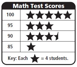 To find the number of students who scored 100, count each star as 4 students. So, 20 students scored 100.